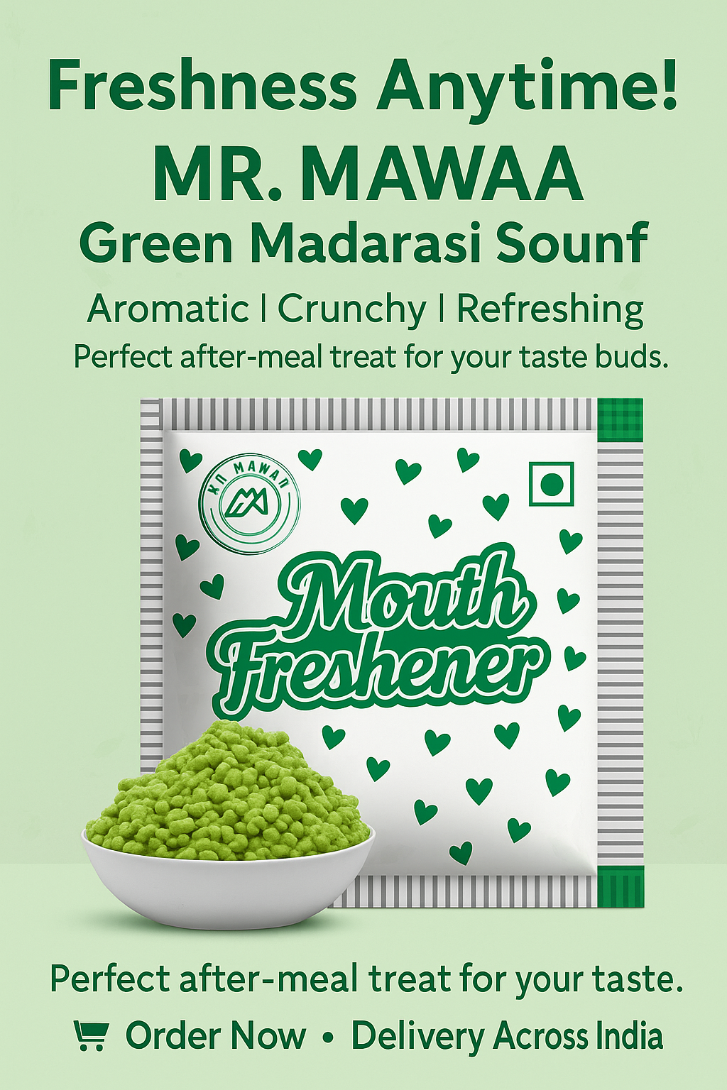 Mr. Mawaa Kashmir Green Mukhwas – 150 Sachets | Refreshing Mouth Freshener | Sweet Digestive Mix | After-Meal Delight | Bulk Pack for Home, Hotel, Catering, Gifting & Party Functions